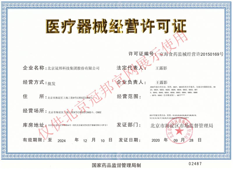 北京冠邦科技集團股份有限公司是集研發、生產、銷售為一體的醫療器械企業。2004年入駐北京市中關村上地信息產業基地,榮獲“高新技術企業”認證、中國醫療器械CMD質量體系認證和CE認證。